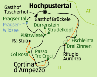 Tag 6 Cortina – Dreizinnenblick - Drei Zinnen – Fischleintal; Aufstieg ca. 950 Hm, Abstieg ca. 960 Hm / ca. 5,5-6 Std. Variante 2: Aufstieg ca. 1.020 Hm, Abstieg ca. 120 Hm / ca. 4,5-5 Std. Am Morgen nehmen Sie den öffentlichen Bus zum Dreizinnenblick. Vom Dreizinnenblick wandern Sie über die Rienzböden und durch das Rienztal hoch zu den Drei Zinnen, das Wahrzeichens der Dolomiten. Die Drei Zinnen gehören zum UNESCO Weltnaturerbe. Weiter wandern Sie zur bekannten Dreizinnenhütte. Von dort führt Sie die Strecke unterhalb des im Ersten Weltkriegs umkämpften Paternkofels (der legendäre Bergführer Sepp Innerkoflerverlor hier sein Leben) ins Fischleintal. Vom Fischleintal nehmen Sie den Bus nach Toblach. Sie können als Variante vom Dreizinenblick hoch zu den Drei Zinnen und zum Rifugio Auronzo wandern und von dort mit dem Bus nachToblach fahren. (Busticket nicht im Preis inbegriffen). Übernachtung im Hochpustertal.