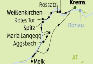 Lernen Sie die zauberhafte Wachau kennen. Ihre 54 Kilometer lange Wanderreise führt Sie über den Welterbesteig. Dieser Abschnitt des Donautals ist viel gerühmt – und das nicht umsonst. Die saftigen Marillen und köstlichen Weine kennt man auch über die Grenzen des Landes hinaus. Lassen Sie sich bei einer Wanderung in eine herrliche Landschaft entführen. Gut angelegte und teils asphaltierte Wege sichern eine entspannte Tour. Auf der Route wandern Sie entlang der Weingärten, zeitweise an recht steilen Hängen. Zu Ihren Füßen liegt die blaue Donau, eingebettet in schroffe Felsen. Auf dem Weg von Krems nach Melk eröffnen sich Ihnen tolle Panoramen. Sie kommen vorbei an namhaften Städten wie Dürnstein, Spitz oder Melk. Bestaunen Sie Burgen, Ruinen und Schlösser, die die Region auszeichnen. Natürlich darf unterwegs auch der Einkehrschwung nicht zu kurz kommen. Genießen Sie exzellente Weine und beißen Sie in die wohl beste Marille, die Sie je gegessen haben.