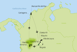 - Inlandsflüge Bogotá – Kaffeezone, Kaffeezone – Cartagena, Cartagena – Bogotá inkl. 20 kg Gepäck (Umsteigeverbindungen möglich)